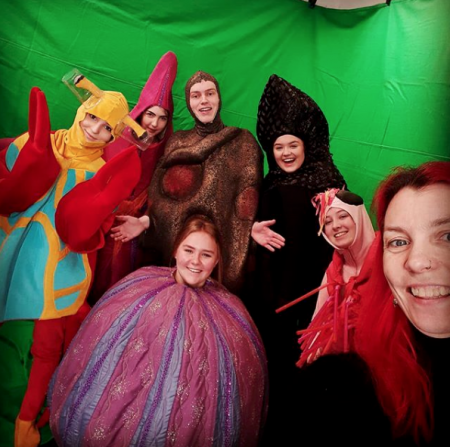 A snapshot from the TV-studio with the “marine creatures” in front of a green-screen.