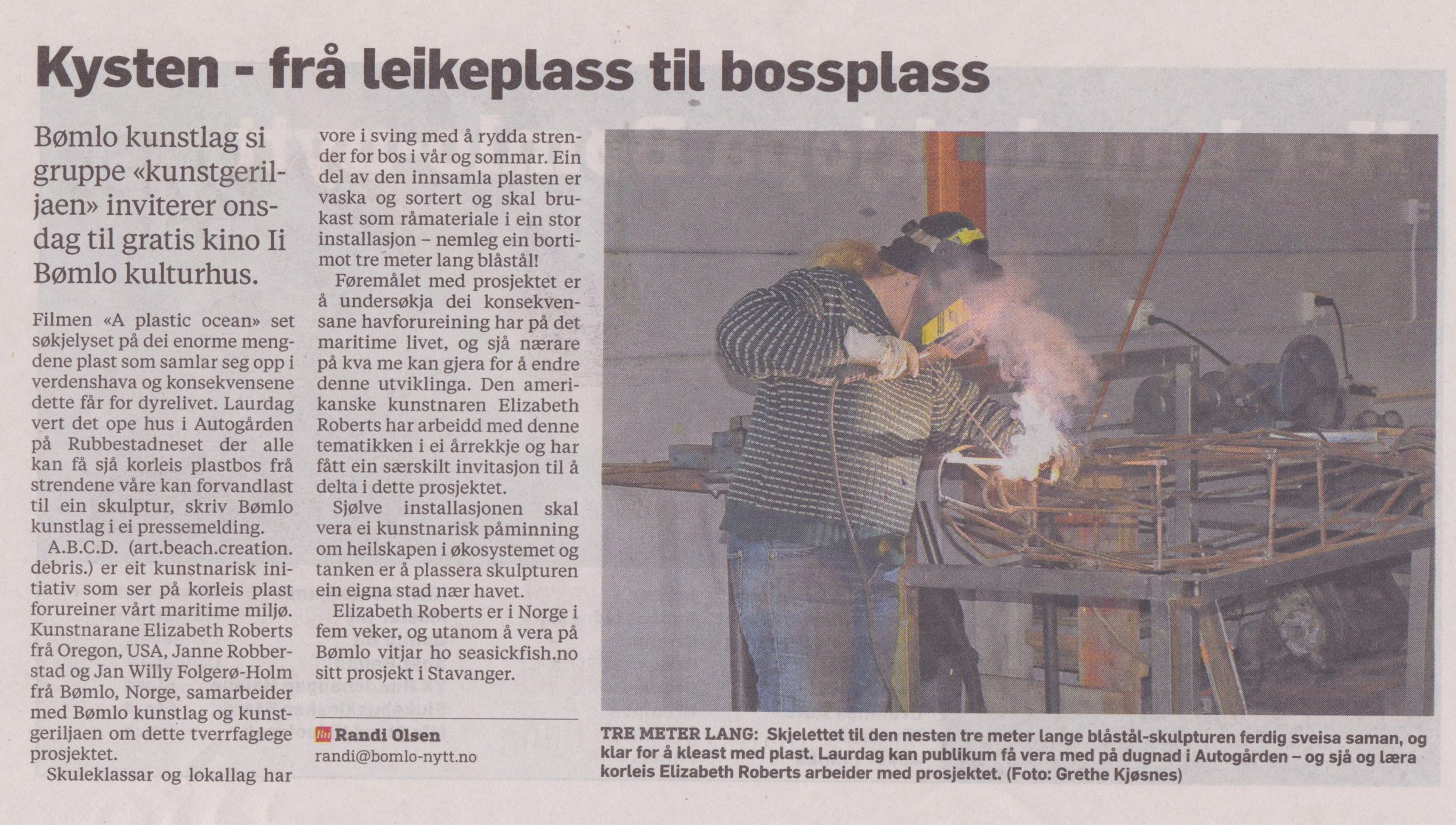 Our ocean-plastic art-project has been greatly supported by our local newspaper Bømlo-nytt. We truly appreciate that!
