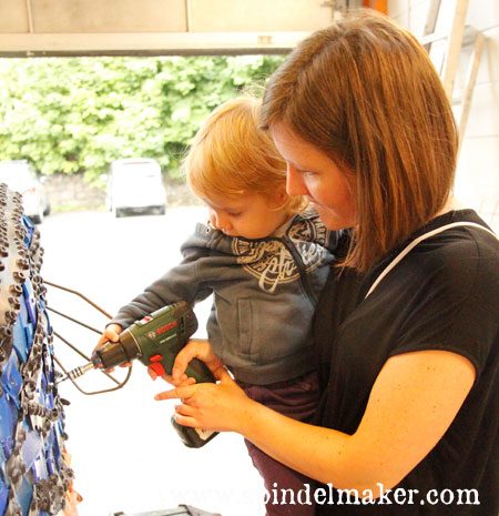 Saturday, we invited the public to an open house at the workshop. It was a social event, and lots of people stopped by. Everyone that came, had to drill a screw into the fish, as a symbolic participation and ownership in the project. Old and young!