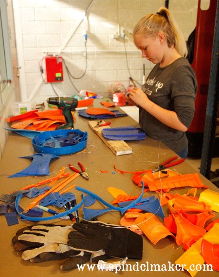 Some of the older kids participated, like this young girl who made at least one fin today. Give girls power-tools!