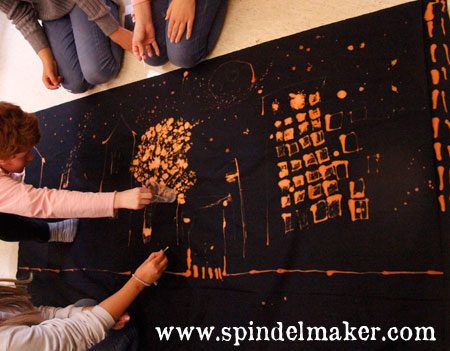 Working with 7th-graders at a CREATIONS´ WASO-project. The theme is Electricity, and the students studied electricity in nature, untamed, and the traces it left. This inspired them to make their own versions, put together as the set for the little opera.