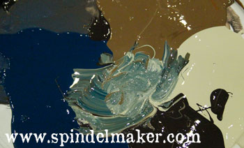 Myself, I made rain-heavy clouds by the yard! Mixed from a palette of dark grey-brown, pale brown, green-blue and ivory.