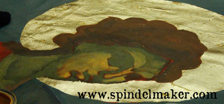 With a base of olive-green and sienna he started working on the face: