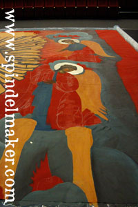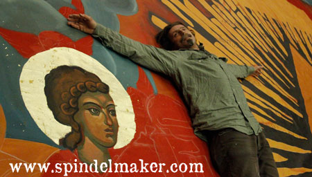 So while waiting for the paint to dry enough for us to roll it up and tuck it away before the cinema, we took some more photos. Here is Lars, my icon-expert-friend showing just how big the angels are.