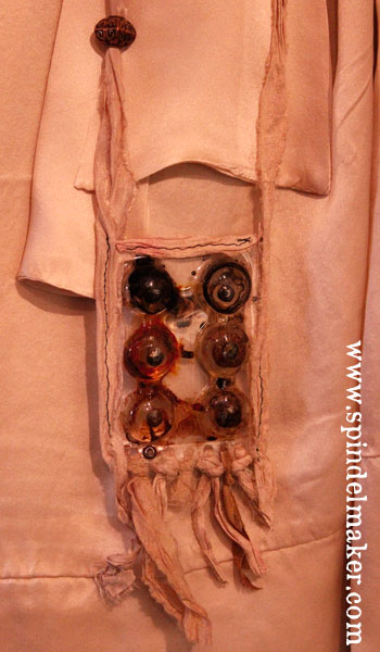 A little late-nite arting resulted in this necklace made from sari silk, rayon ribbon, plastic, ICEresin and some metal beads. The middle part is see-through.