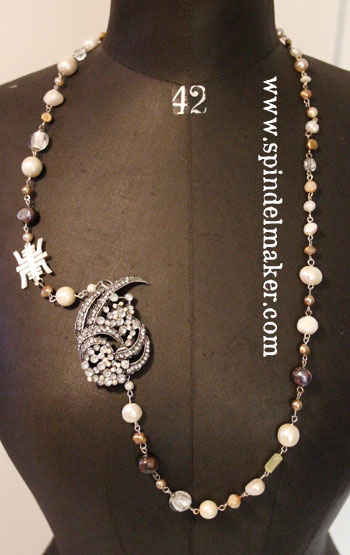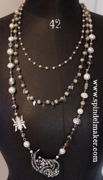 My Sunday-evening past-time this weekend was mixing and matching old vintage pearls from my Grandmother, with new fresh-water-pearls, all in different sizes and colors. And in between an occasional glass-bead. Here it is combined with another necklace from NoaNoa.